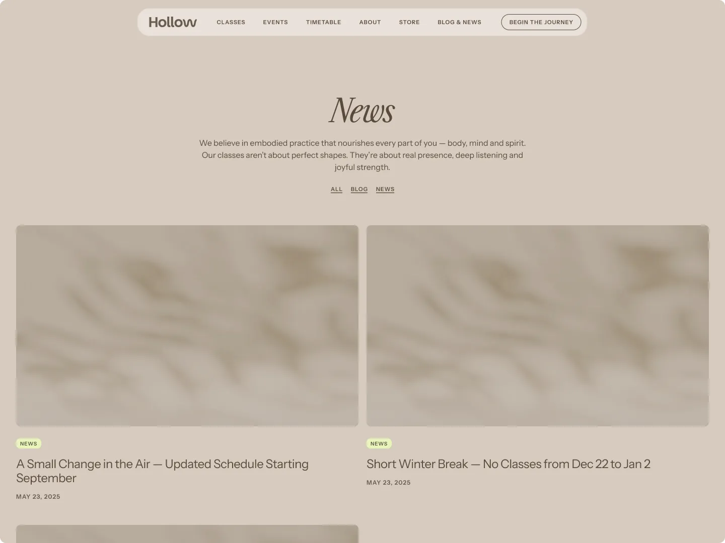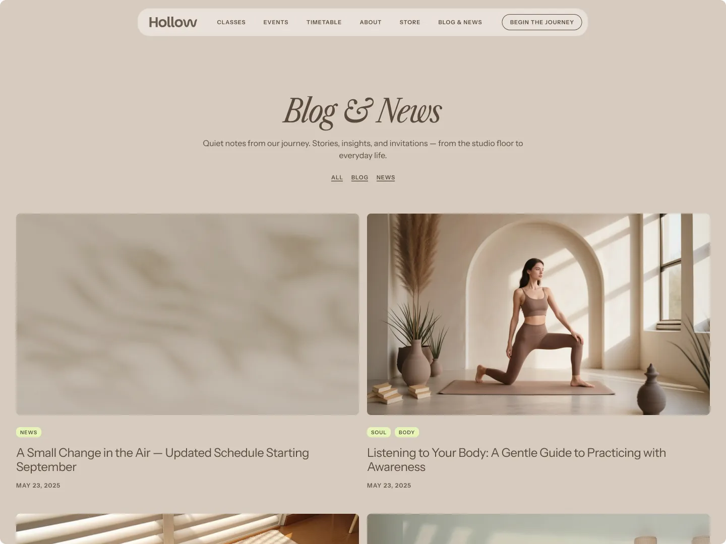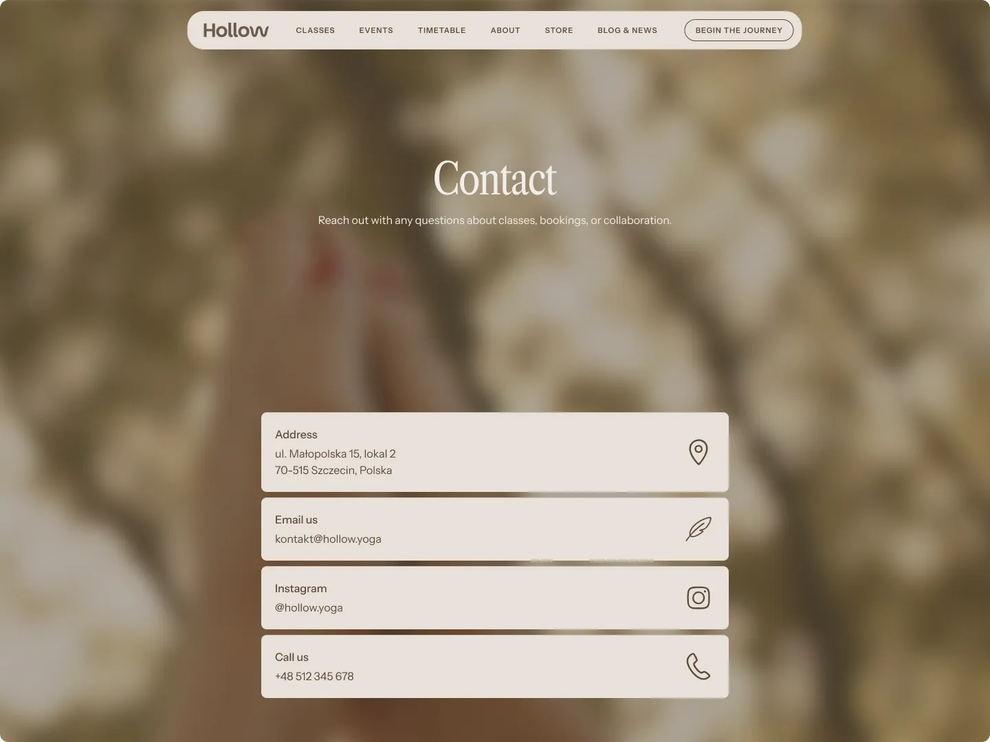 Hollow was born from the need for softness. For a space that doesn’t ask you to perform — just to be. Led by our founder and teacher, Magdalena, this studio is built on presence, breath, and a quiet kind of power.